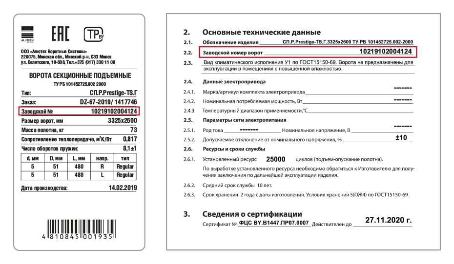 7. Сверьте номер ворот в паспорте с номером на табличке изделия (обычно расположена с внутренней стороны ворот на второй или третьей панели снизу).