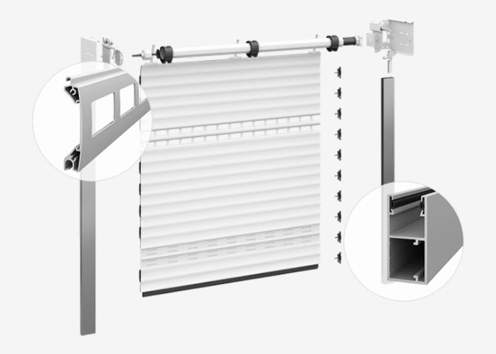 все комплектующие роллетных ворот изготовлены из алюминия, устойчивого к атмосферным осадкам, перепадам температур и коррозии